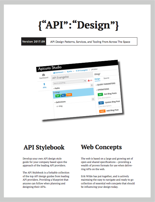 This API design research covers the concepts people often associate with API design, like REST, and Hypermedia, but also touches on other media types, API definitions, and many of the services, tooling and other solutions that have emerged to serve the space.